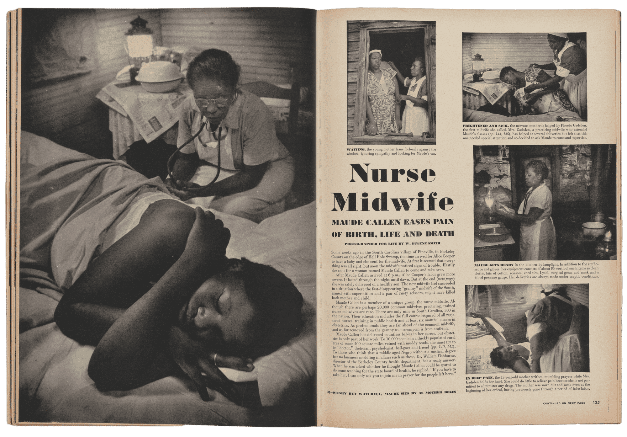 Registered nurse and midwife Maude Callen (1898–1990) served the rural community of Pineville, South Carolina, for over four decades. A graduate of Florida A&M College for Negroes (now Florida A&M University), Callen studied nursing at Homer G. Phillips Hospital in St. Louis and midwifery at Tuskegee Institute in Alabama. In Pineville, she established medical clinics and trained lay midwives in modern techniques. In December 1951, Life magazine featured Callen in a photo essay by W. Eugene Smith.